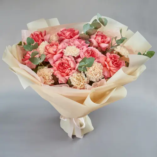 Нежный букет роз, гвоздик и хризантем с эвкалиптом5 070 ₽Нежный букет роз, гвоздик и хризантем с эвкалиптом 5 070 ₽ -
