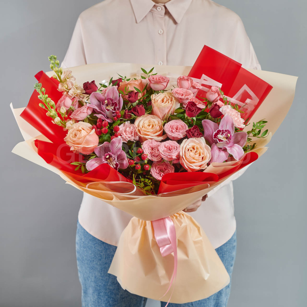 Возможны минимальные отличия букета от фотографии и допустимы отличия по цветовой гамме, так как цветы являются природным материалом и собираются вручную