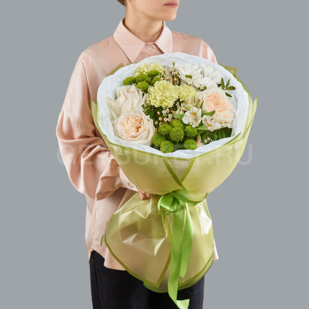 Возможны минимальные отличия букета от фотографии и допустимы отличия по цветовой гамме, так как цветы являются природным материалом и собираются вручную
