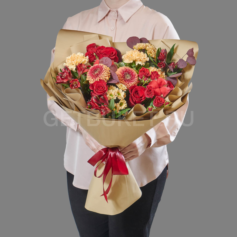 Букет из красных гербер, роз и гвоздик8 410 ₽Букет из красных гербер, роз и гвоздик 8 410 ₽ -