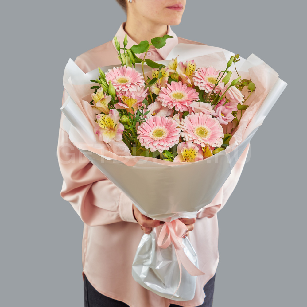 Букет из гербер, эустомы и альстромерий