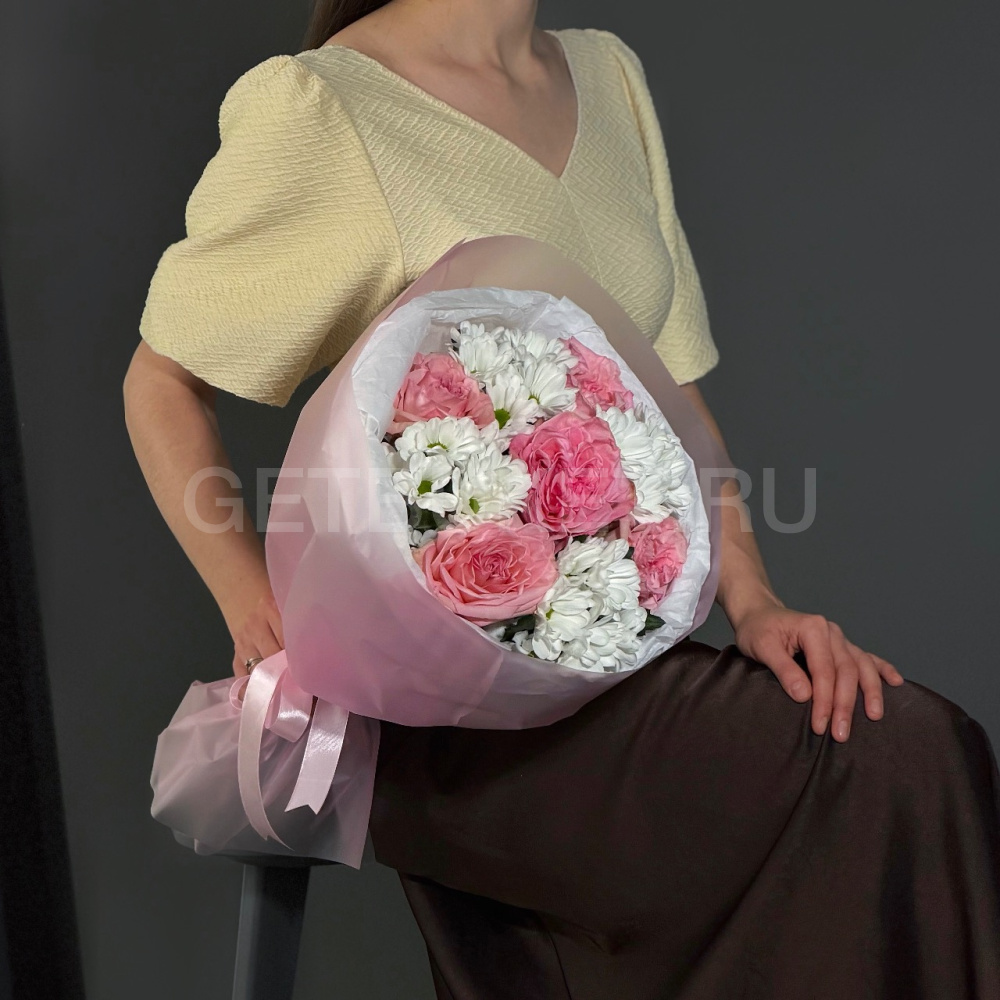 Букет из хризантем и роз