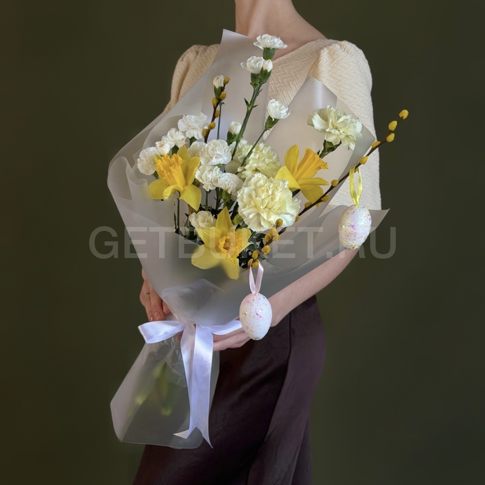 Букет из нарциссов, гвоздик и вербы2 630 ₽Букет из нарциссов, гвоздик и вербы 2 630 ₽ -