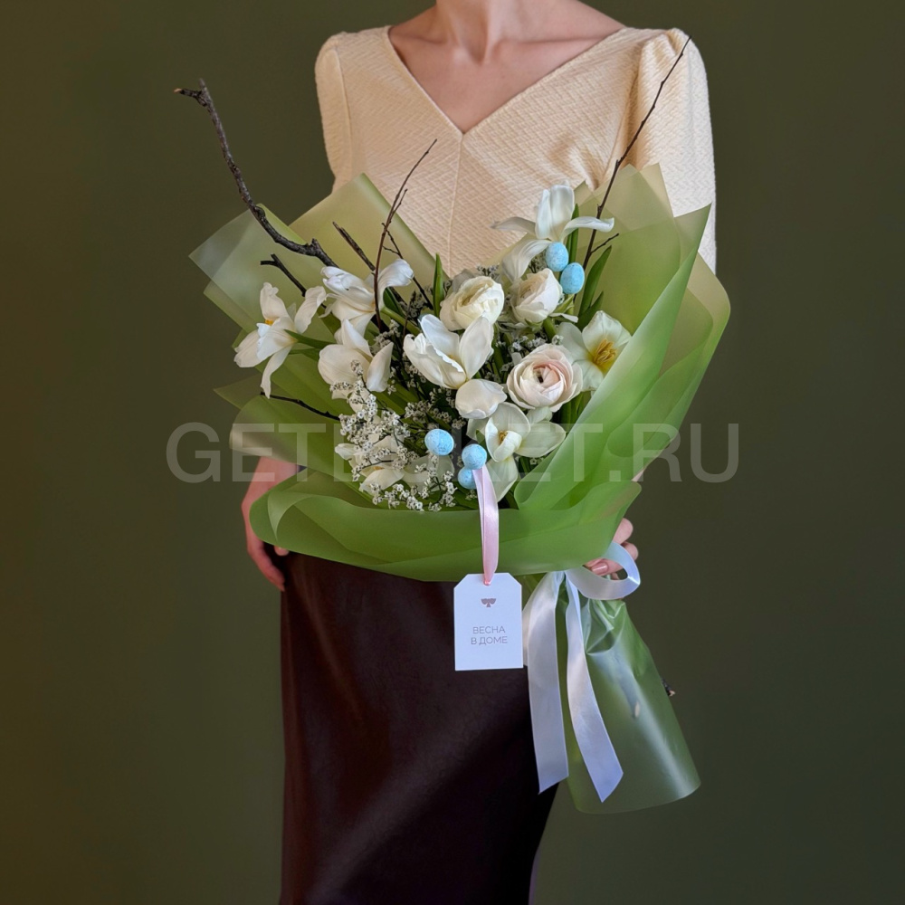Пасхальный букет из орхидеи, вербы, генисты и лимониума с эустомой6 210 ₽Пасхальный букет из орхидеи, вербы, генисты и лимониума с эустомой 6 210 ₽ -