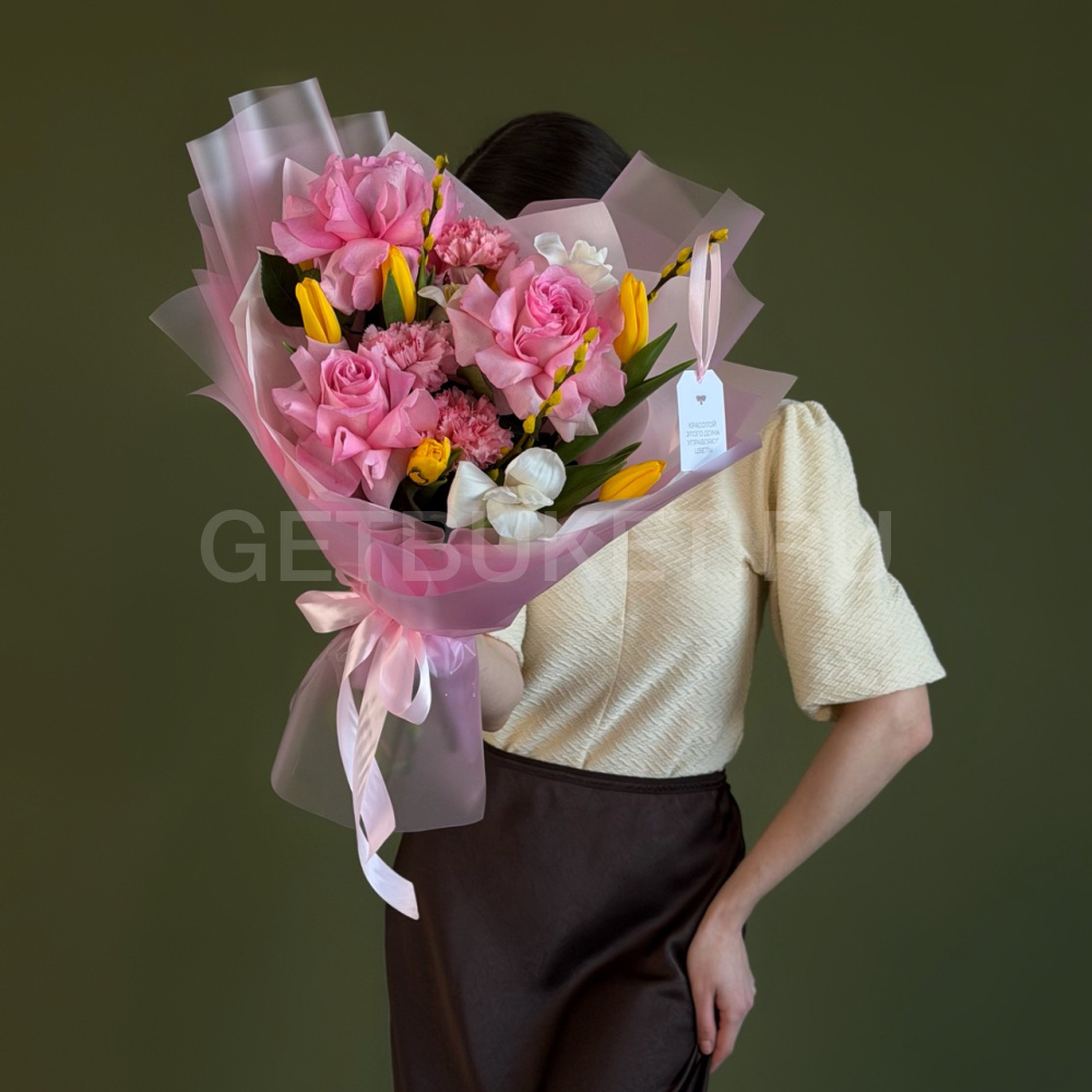 Пасхальный букет из гвоздик, кустовых роз и гербер с вербой3 900 ₽Пасхальный букет из гвоздик, кустовых роз и гербер с вербой 3 900 ₽ -